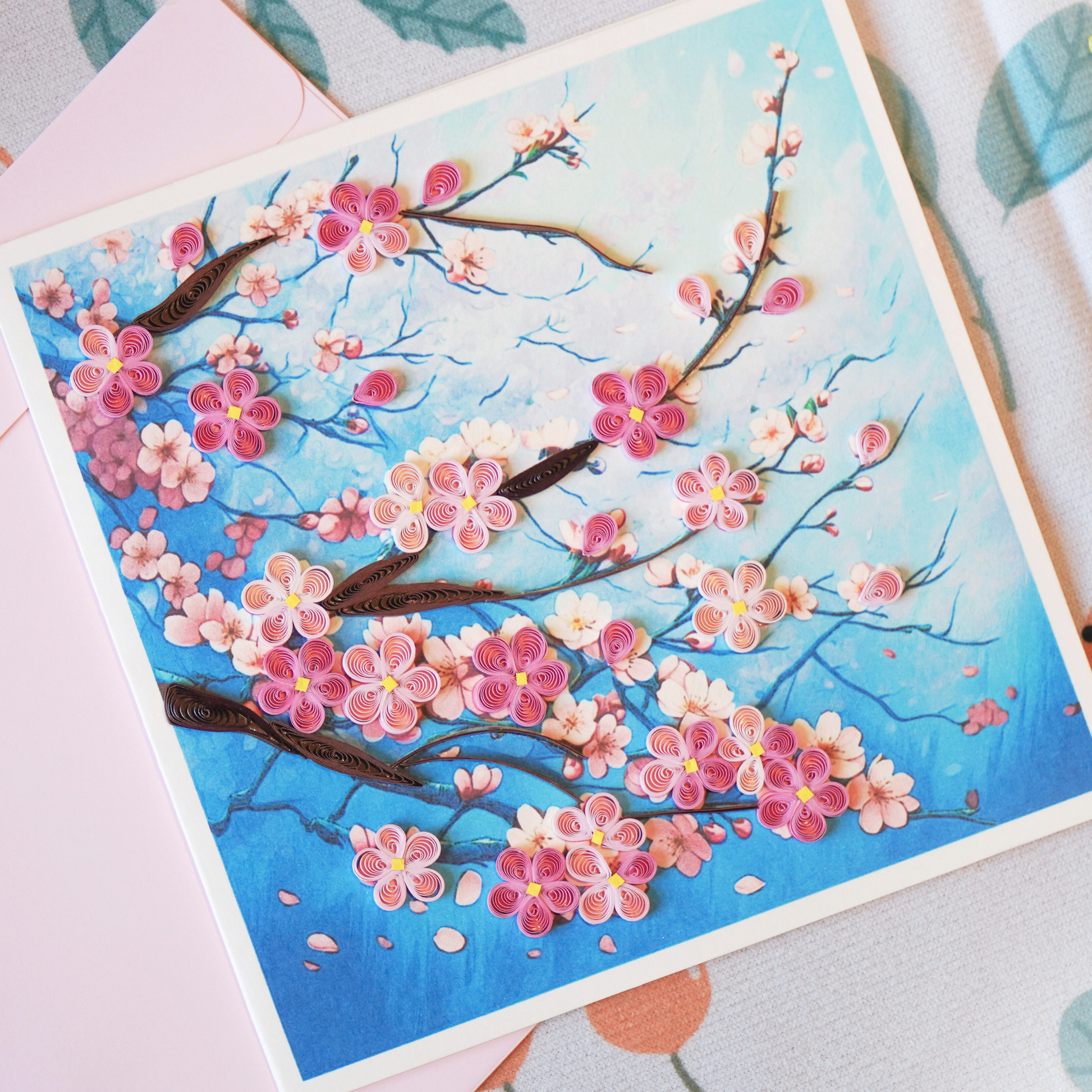 🎨 Unique Handmade Art – Featuring delicate pink blossoms on dark branches, carefully crafted with intricate quilling details.